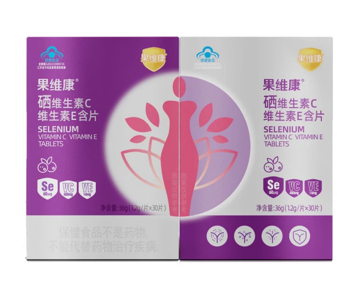 每片含:硒604g、维生素C 480mg、 维生素E 14mg